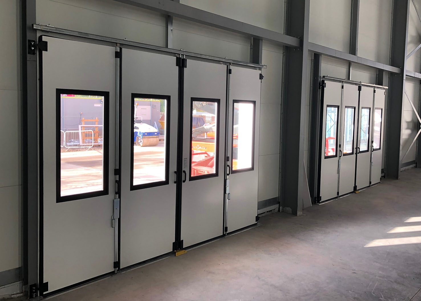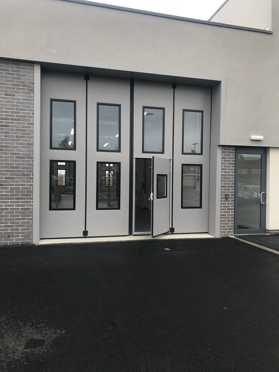 Constructed using unique rigid composite panel system, our range of insulated side sliding and folding doors is designed to meet the harshest of industrial applications, while maintaining strong architectural appeal. The perfect solution for big sized openings , available in unlimited width and no headroom is of concern.